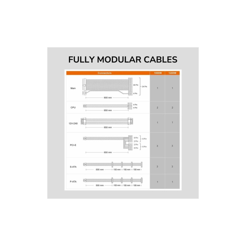 - Платиновий рейтинг Cybenetics за ефективність (тільки 1000 Вт)