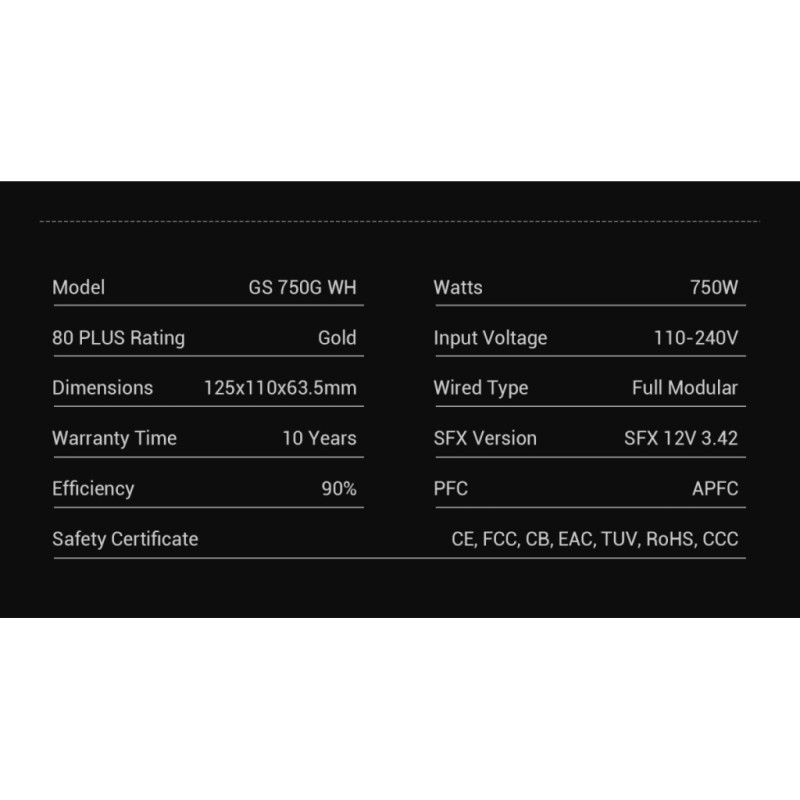 Характеристики Блок живлення Gamemax 750W (GS 750G WH V25)