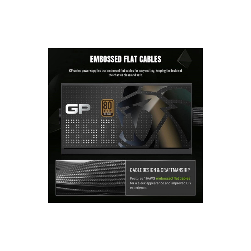 Ультрастабільний блок живлення GAMEMAX GP 850B 80+ Bronze з подвійним керуванням постійного струму, інтелектуальним вентилятором та преміальним теплорозсіюванням.