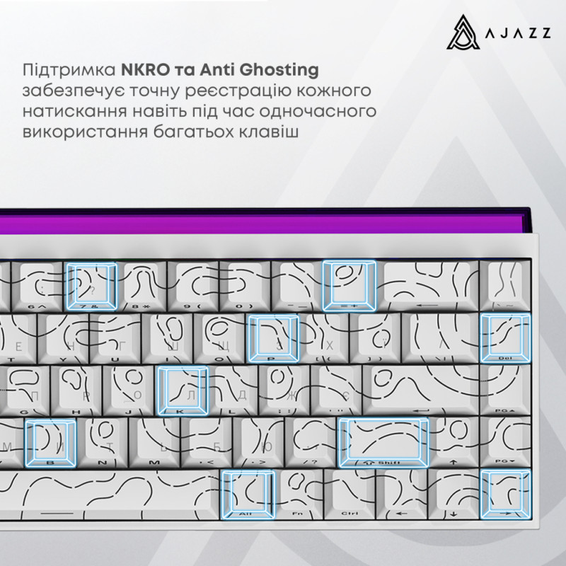 Характеристики Клавіатура Ajazz NK68 Red Switch USB UA White (NK68-R-S-W)