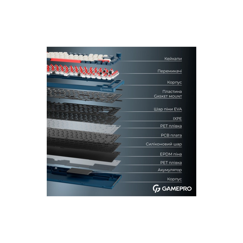 Характеристики Клавіатура GamePro Asgard Yord Wireless/Bluetooth/USB UA Blue (MK266BL)