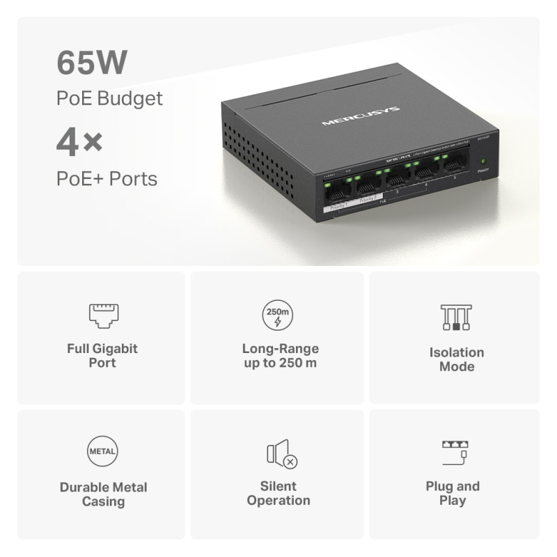 Опис Комутатор мережевий Mercusys MS105GP