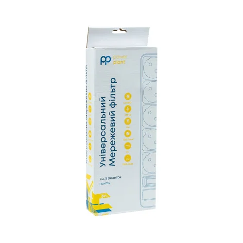 Мережевий фільтр на 5 розеток призначений для підключення широкого спектру компютерної, побутової та електронної техніки до електричної мережі змінного струму з номінальною напругою не більше 250В та номінальним струмом не більше 10А. Кабель довжиною 7 м дозволить підключити техніку в місцях віддалених від стаціонарних розеток. Ізоляційний матеріал H05VV-F та провідники зі 100% міді гарантують високу стійкість до температур та механічних пошкоджень, а також максимальну електропровідність та стійкість до навантажень. Корпус мережевого фільтра виготовлений із вогнестійкого пластику. Фільтр оснащений універсальними розетками євростандарту із заземленням. Надійний та зручний подовжувач захистить електронну техніку від короткого замикання та перепадів напруги. Фільтр PowerPlant стане відмінним помічником у будинку, офісі або на дачі.