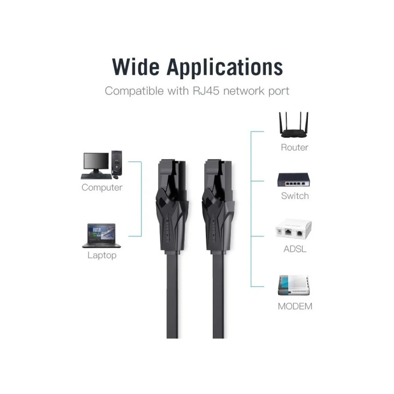 Опис Патч-корд Flat Cat.6 UTP Patch Cable 0.5M Black VENTION (IBJBD)