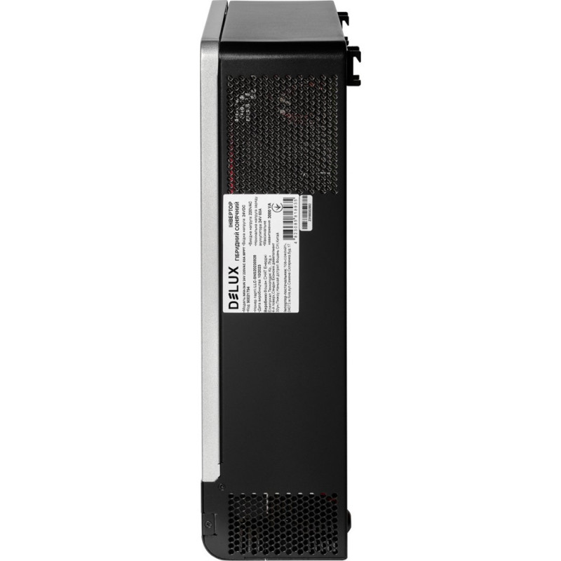 Інвертор DELUX це електронний пристрій, що перетворює постійну напругу акумуляторної батареї та сонячних панелей (DC) в однофазну змінну напругу 220В з частотою 50 Гц (AC), аналогічну напрузі побутової мережі змінного струму. Цей інвертор виконує також функцію зарядного пристрою для зарядки акумуляторної батареї від побутової мережі змінного струму.