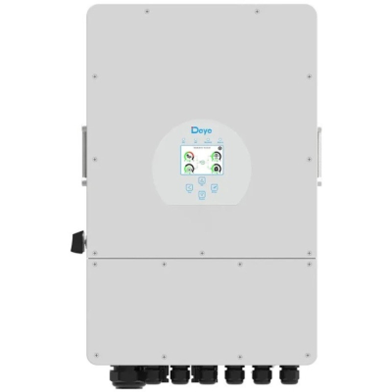 Гібридний інвертор Deye SUN 12K-SG04LP3-EU – це провідний високоякісний продукт від китайського виробника Deye. Компанія Deye Energy, вважається одним з кращих інверторів гібридного типу на ринку, вона може працює в автономному від акумуляторів, може скидувати надлишки в мережу, що дозволяє підключати вашу станцію до державної програми та швидше окупити ваші вкладення в сонячну електростанцію. Список корисних відео по налаштуванню інвертора: Швидке налаштування інвертора - відео тут; Зменшення пікових навантажень - відео тут; Робота інвертора в комплексі з генератором - відео тут; Налаштування системи моніторингу - відео тут; Паралельно робота до 16 інверторів - відео тут. Інвертор Deye SUN-12K-SG04LP3-EU має ряд переваг в порівнянні з конкурентами, це стосується і технічних характеристик, і програмних і функціональних. Інвертор оснащений двома MPPT трекерами. Тому до інвертора можна підключати два окремі масиви сонячних панелей (східний та західний скат даху будинку чи монтаж частини панелей на даху, а частини на землі). Струм MPPT від панелей - 26А + 13А, а діапазон MPPT - від 200~650 В. Робота в одно та трьохфазній системі в режимі паралельного задання. Інвертор може працювати в режимі паралельного з'єднання до 16 шт., 3 шт. на кожну фазу в трьох фазній мережі. Гібридний режим роботи. Інвертор сумісний з акумуляторами Li-ion, LFP та Lead Acid (свинцево-кислотного типу) типу, тому система на основі такого інвертора та акумулятора зможе працювати впродовж тривалого терміну без заміни АКБ. Ще одною перевагою гібридного режиму роботи є можливість продавати надлишки згідно "зеленого" тарифу. Також акумулятор сумісний в зі свинцево-кислотними акумуляторами. Інтелектуальна система захисту вберігає інвертор від критичних поломок, які можуть виникнути при перевантажені, перенапрузі чи струму короткого замикання. Крім цього, інвертор моментально реагує на дугові пробої, що вберігає станцію від загорання. Контроль генерації. Інвертор сумісний з інтелектуальним лічильником, який дозволяє обмежувати рівень генерації станції задля запобігання перетіканню надлишків в мережу (актуально тоді, коли немає змоги підключити "зелений" тариф) Гарантія. Даний інвертор має 5 річну офіційну гарантію від виробника. Дана модель відповідає стандарту захисту IP65. Температурний діапазон роботи - від -40~60°C. Гарантія на Deye SUN-12K-SG04LP3-EU складає 5 років, що ще раз підтверджує високу якість товару.