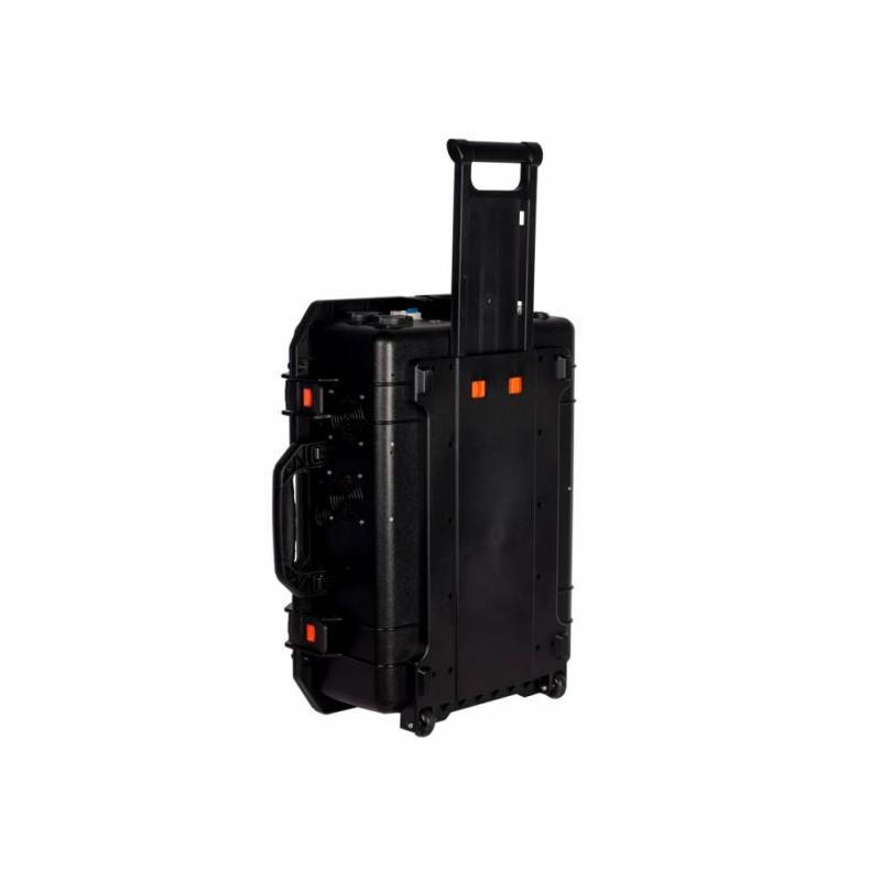 - Компактний та зручний корпус у формі валізи з колесами та складною ергономічною ручкою забезпечує легкість та зручність транспортування. Вага електростанції складає 45,6 кг.
